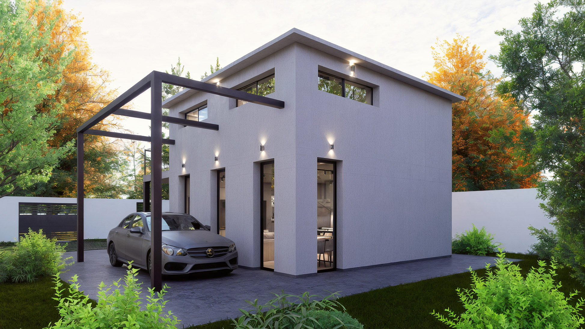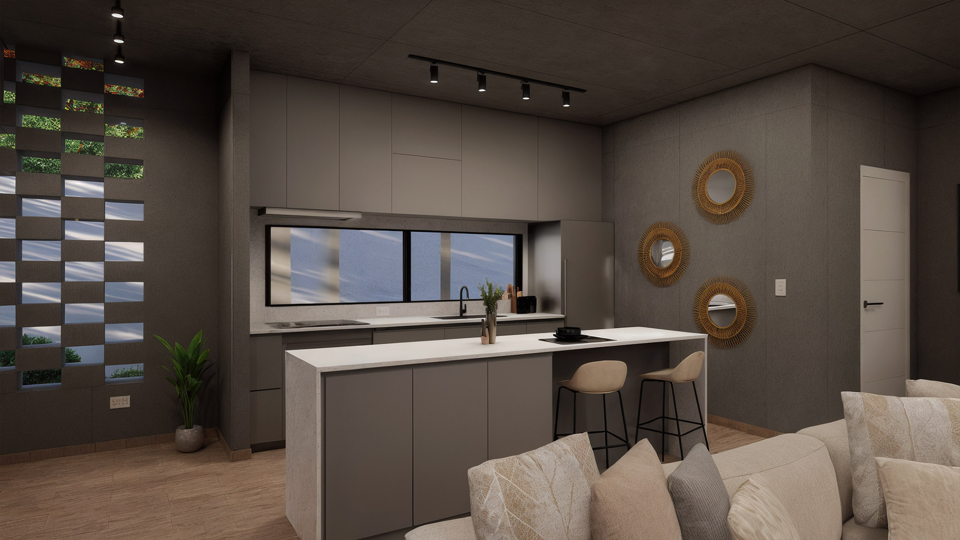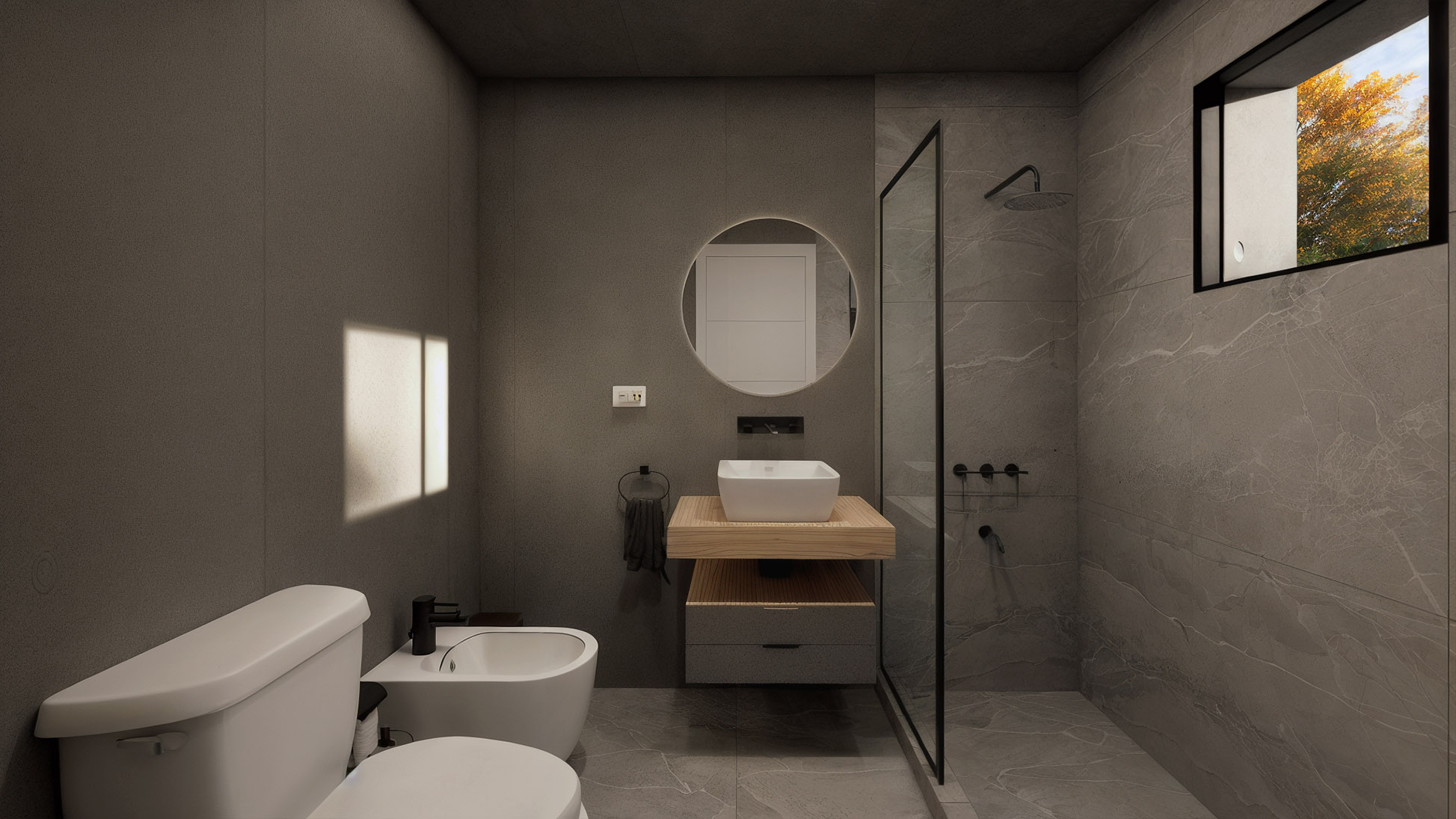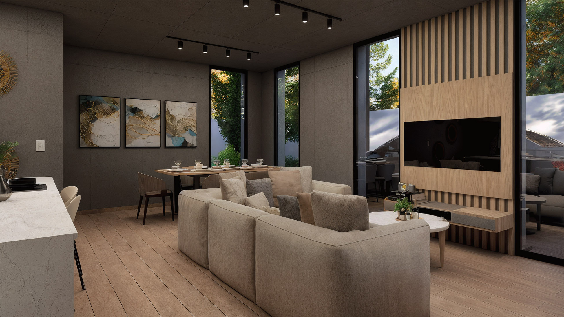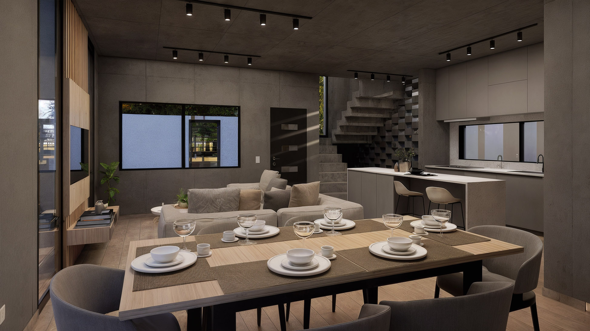 Este proyecto propone una forma de habitar amplia y cálida, con una planta baja integrada donde living, cocina y comedor conviven en un mismo gesto, iluminados por luz natural y acompañados por materiales nobles como hormigón abotonado, madera y pisos símil madera. En la planta alta, la intimidad se refuerza con dos habitaciones y una suite con baño y vestidor como refugio cotidiano. El exterior suma un semicubierto que, pensado para recibir una enredadera, extiende la casa hacia la naturaleza y la hace crecer con el entorno. La vivienda busca equilibrar lo sólido y lo cálido, lo abierto y lo íntimo, invitando a habitarla con calma.